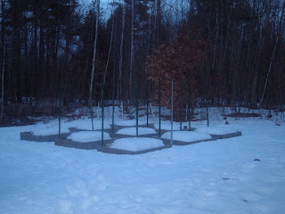 This year I plan to start saving seeds and tomatoes are one of them. I've learned that I need to keep the plants of any one variety at least 5' away from another variety so they don't cross-pollinate and they have to be open-pollinated varietes and not hybrids. To that end I've had to re-plan my garden. Those tall green poles at the corners of six of the front beds are sturdy fence posts from which I will wire and twine. I'm ordering 15 plants this year from Territorial Seed which ships PLANTS, 3 of each of only 5 varieties so I can save seed. I will put a trio at each of the outside poled beds and the beds with poles in between will be peas. I can put the short determinate Oregon Spring in the back of one of the back beds since they won't need the tall poles and wire and twine.